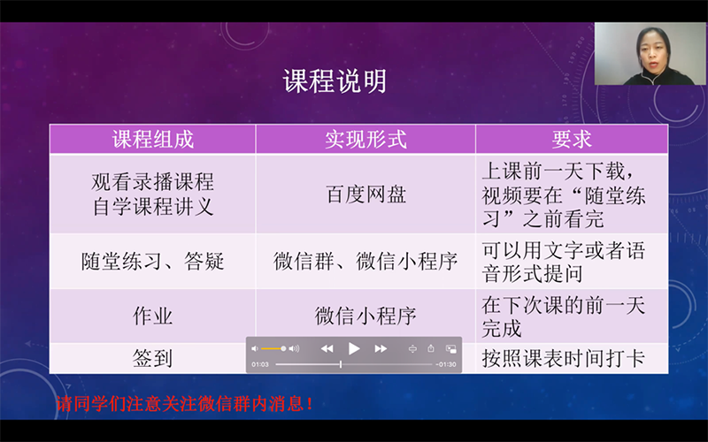 线上课程开课近一周,同学们在任课老师的带领下,通过观看课程直播、微信群聊文字上课、微信群聊语音听课、观看录课视频、下载课程资料自学、与导师一对一交流等多种形式开展线上学习。与教室内授课不同,线上授课不直接面对老师,一方面更考验同学们的自律自觉,另一方面也给师生间的课堂互动增加了挑战。为了更好地保障线上教学,辅导员们在课程群内密切关注课堂情况,了解学生近期的学习情况,及时收集留学生对线上课堂的反馈和感受。