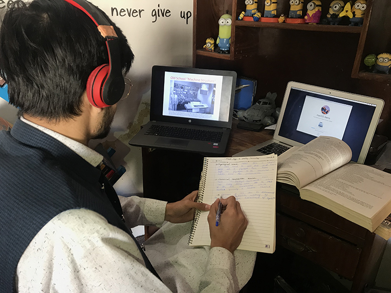 开学以来,各门课的老师各显神通,上网课的方式多种多样。我也在积极适应在家学习,跟上课程进度,就算不在学校学习,也努力保持在校学习的生活习惯。