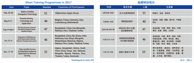 短期培训班是中心工作的特色之一,在利用学位教育资源的同时,积极拓展与教育部、科技部、应急管理部、生态环境部、中科院、亚太空间合作组织、中国卫星导航系统管理办公室、航天五院神舟学院、航天一院长征学院、航天东方红公司等单位的合作,联合举办了20余期短期培训班。内容涉及遥感技术、卫星导航、空间法律与政策、北斗技术与应用等多个科技前沿领域,内容丰富、注重实效。与学位教育的专而精不同,短期培训班覆盖面广、内容新、全英文授课,一般每年不少于三次。授课教师来源更为广泛,除北航外,更多的是来自于国内其他高校、研究机构、合作企业及国外合作伙伴的专家。短训班一般为期两周,包括授课、技术参观、学员论坛等环节。