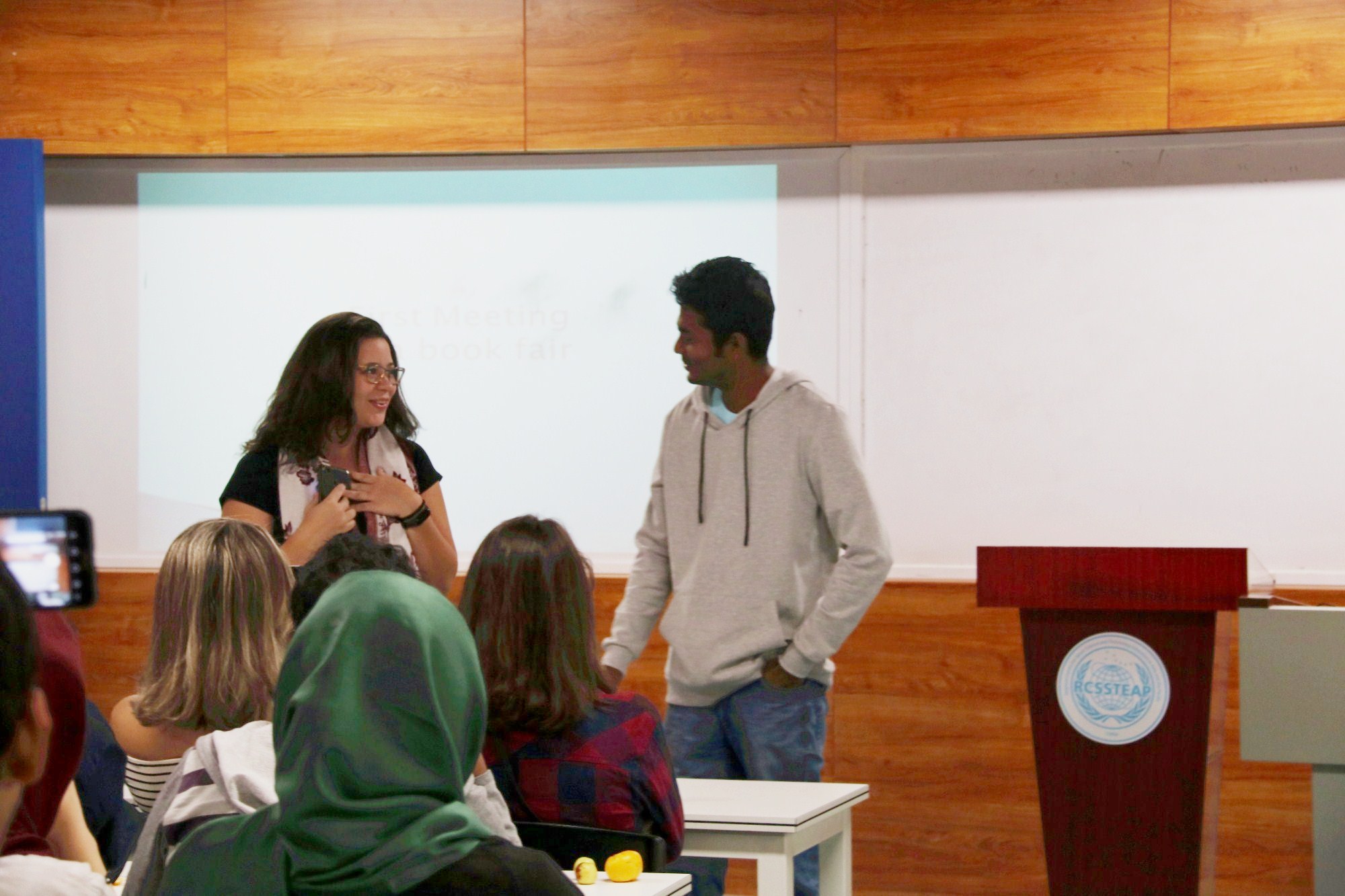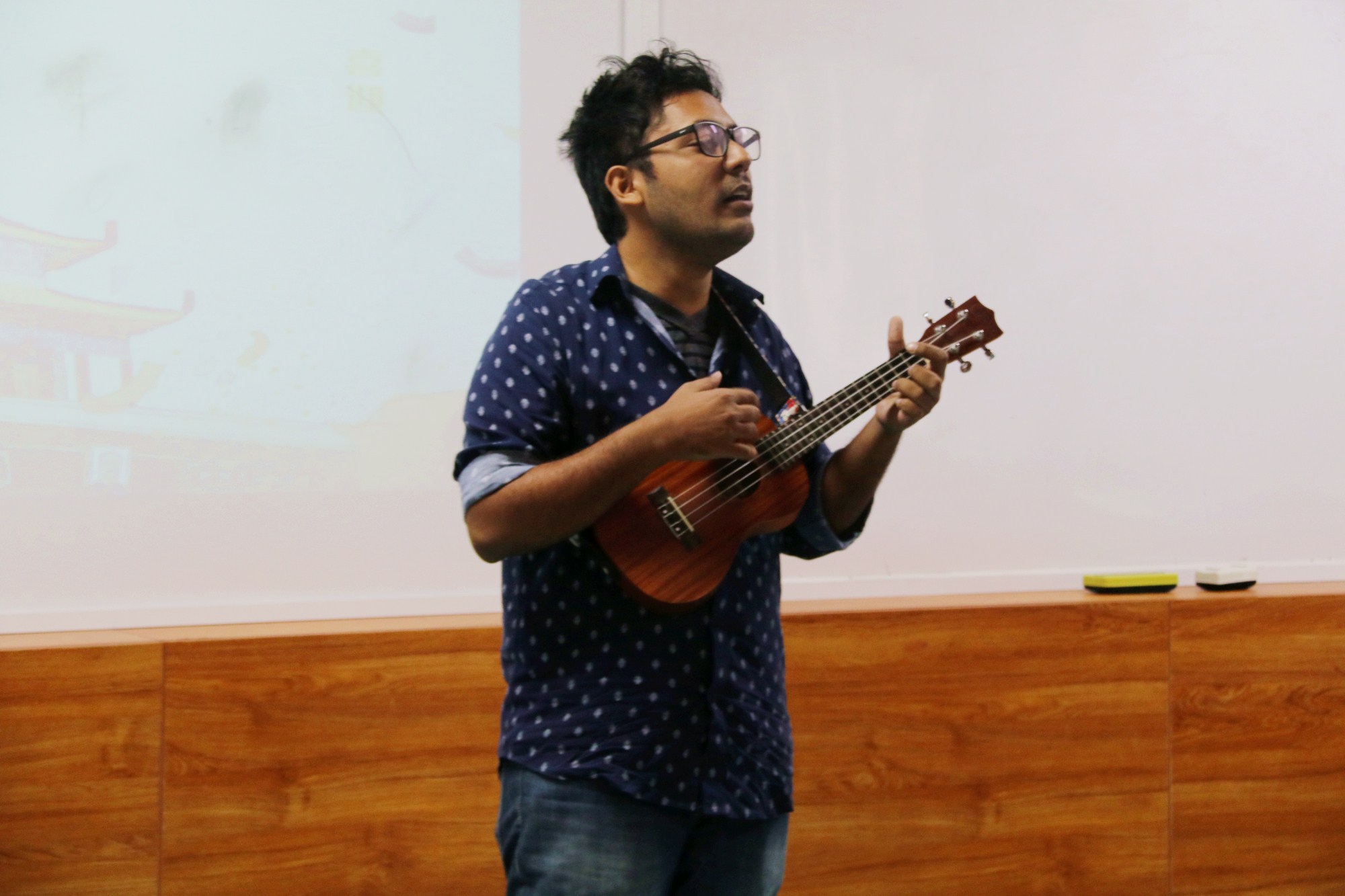 最后,由学员们献上了精心准备的节目,来自孟加拉的博士研究生RATUL, ADIB KHONDOKER为大家带来了尤克里里弹唱——Somewhere Over the Rainbow, 获得了大家的满堂喝彩;来自孟加拉的小卫星专业的学员NAZMUL HASAN SUJAN和来自巴西的空间法专业学员ANA PAULA CASTRO DE PAULA NUNES为大家献上了自导自演的情景爱情哑剧,博得了全体学员的阵阵欢笑。