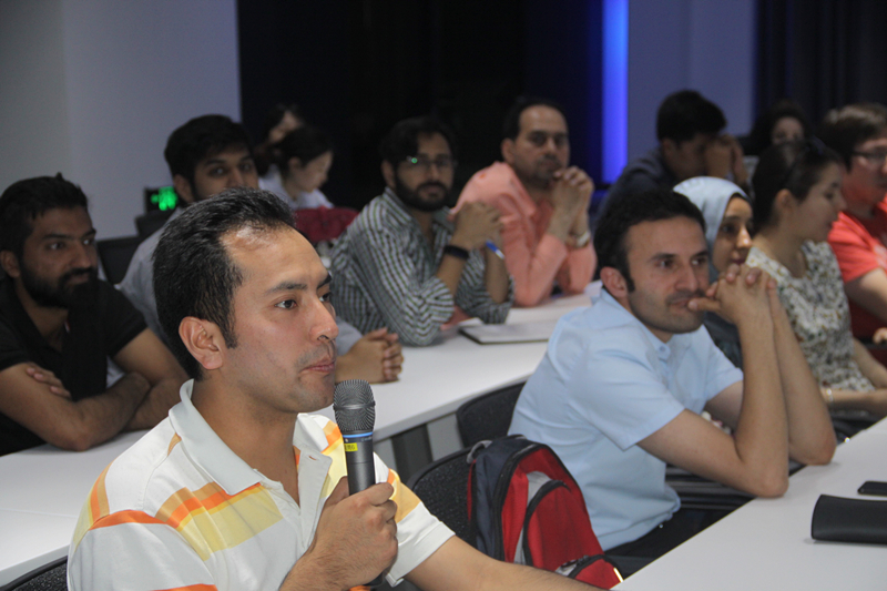 首先,刘熔源博士为学员们作了高光谱遥感技术方面的讲座,介绍了高光谱遥感技术的基本原则,数据处理方法和在地理研究和环境保护方面的应用,并与学员们畅谈了高光谱遥感技术的发展前景和面临的诸多挑战。之后,葛大庆教授作了题为“InSAR技术发展与应用”的精彩讲座,就合成孔径雷达干涉测量技术(InSAR)等卫星遥感技术在地质探测、分析成像、商业实践等方面的原理及应用为学员们作了详细解读。接着,中心高级工程师董丽娜从任务管理、数据采集、数据处理、解译制图、野外查验、共享服务、数据支撑、运行管理等八个方面向学员们演示了“国土资源卫星应用系统”,并展示了资源卫星所获取的图像数据。