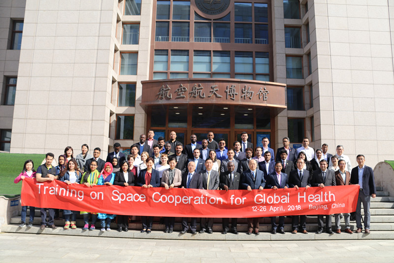 2018年4月12日,由中国国家航天局主办,中国科学院地理科学与资源研究所和区域中心联合承办的“空间与全球健康”国际培训班开班仪式在北航举行。中国国家航天局、中国科学院国际合作局、中国红十字会、中国疾病控与预防制中心、公共卫生监督信息中心、中国科学院地理科学与资源研究所、中国地理学会、区域中心等单位代表及学员60余人出席。会议由中国科学院地理科学与资源研究所研究员庄大方主持。中国国家航天局国际合作司处长许岩松,中科院地理所党委书记、副所长廖小罕,区域中心执行主任、北航国际学院院长翁敬农,委内瑞拉学员代表Burguillos Fajardo Carlos Alberto分别致辞。