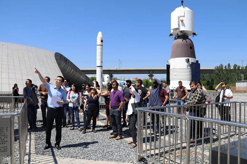 随后,学员们在刘老师的指引下参观了位于航天文化广场内的阿丽亚娜火箭、长征二号F火箭CZ-2F、长征二号丙运载火箭CZ-2C、长征三号甲运载火箭CZ-3A、长征五号运载火箭CZ-5、天宫一号等13枚中外具有代表性的大型航天器高仿真模型。在参观过程中,学员们争相与航天器模型合影留念,同时积极和老师交流探讨相关航天技术问题。
