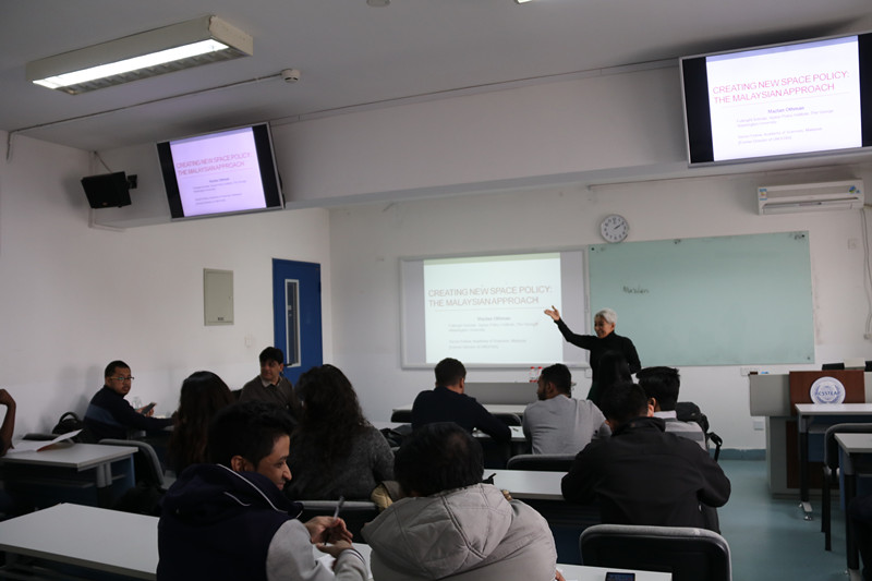 应中心邀请,马来西亚天体物理学家、马来西亚科学院院士、美国乔治华盛顿大学空间法研究所富布莱特学者、联合国外空司前司长Mazlan Othman女士于3月6日至10日到访中心,为学员讲授有关“空间法律与政策热点问题”的讲座,吸引了来自不同学院的中外师生前来聆听。