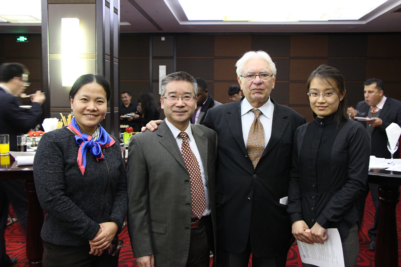 初冬正佳时,玉月扬明晖。时值区域中心咨询委员会首届会议召开之际,国家航天局和区域中心2017新年招待会于12月5日晚在北京丽亭华苑酒店隆重举行。国家航天局秘书长田玉龙,中心咨询委员会主任、北航校长徐惠彬院士,区域中心成员国(阿尔及利亚、孟加拉国、玻利维亚、巴西、印度尼西亚、巴基斯坦、秘鲁和委内瑞拉)代表,相关国家驻华大使馆(阿尔及利亚、阿富汗、委内瑞拉、蒙古使馆、菲律宾、哈萨克斯坦、玻利维亚、阿联酋、乌克兰、老挝)代表,国际组织(APSCO和UN-SPIDER)代表,中国国家航天局、外交部条约法律司、工业和信息化部军民结合推进司等政府部门代表,中心合作伙伴代表,北航校领导,区域中心教师和学员代表,中心工作人员等近100人出席招待会。大家欢聚一堂,共贺新年、共话发展。