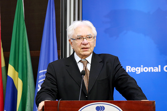 巴西航天局局长黑蒙多先生在致辞中感谢中国政府的大力支持,感谢区域中心对提升空间科学技术在亚太区域的教育水平所作出的积极努力,巴方愿与中方一道继续为提升中心成员国乃至其他发展中国家的空间技术教育水平和应用能力做出实质性贡献。