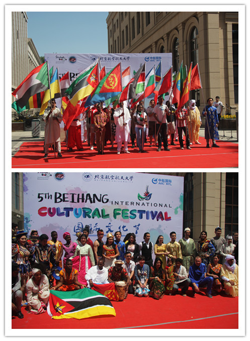本次国际文化节活动分为文化展示和节目展演两部分。在航空航天博物馆前,来自五大洲的学生在各自国家的展台通过当地风情图片、手工艺品、风味美食和特色乐器、服饰等充分展现了不同国家丰富多彩的文化。文化展示结束后,节目展演在知行广场上演。来自各个国家的留学生先后表演了极具风情的本国民族歌舞或者器乐演奏,吸引了众多观众驻足观看。