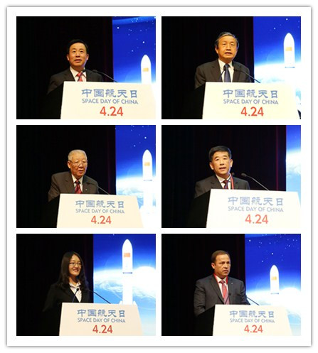马凯副总理宣读习近平总书记在首个“中国航天日”之际作出的重要指示和李克强总理的批示并致辞。工业和信息化部副部长、国家国防科技工业局局长、国家航天局局长许达哲主持活动。孙家栋院士、探月工程三期总设计师胡浩、北航学生戚亚群作为航天老、中、青代表在会上发言。俄罗斯联邦航天集团公司总经理卡马罗夫在会上发言。
