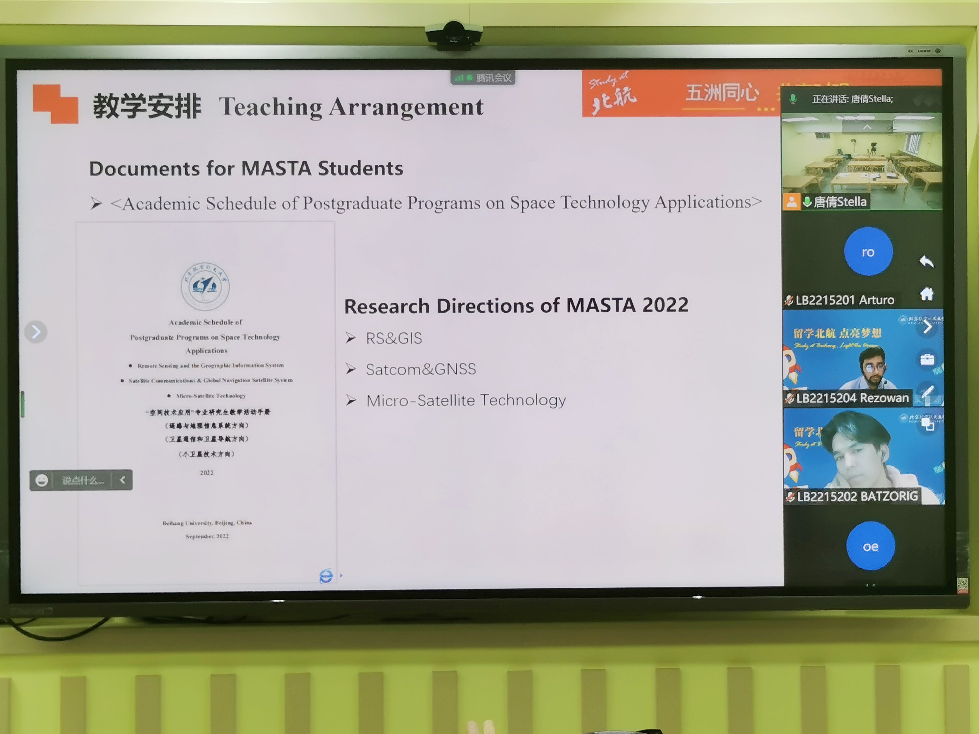 班会伊始,新学员们进行了线上见面和自我介绍,彼此之间有了初步的了解。随后,大家一起聆听了关于区域中心的介绍并观看了宣传视频,对中心以及空间技术应用项目有了更深刻的了解。