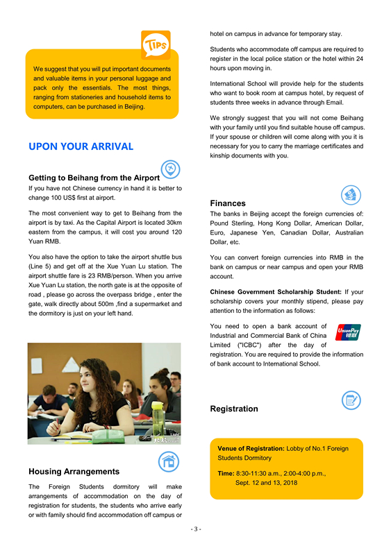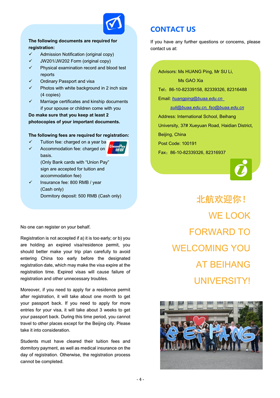 As a new student at Beihang University//RCSSTEAP, you are bound to have questions. We provide you with new student brochure , helping to uncover the answers to the questions you have, and providing you information about campus resources, programs and services.